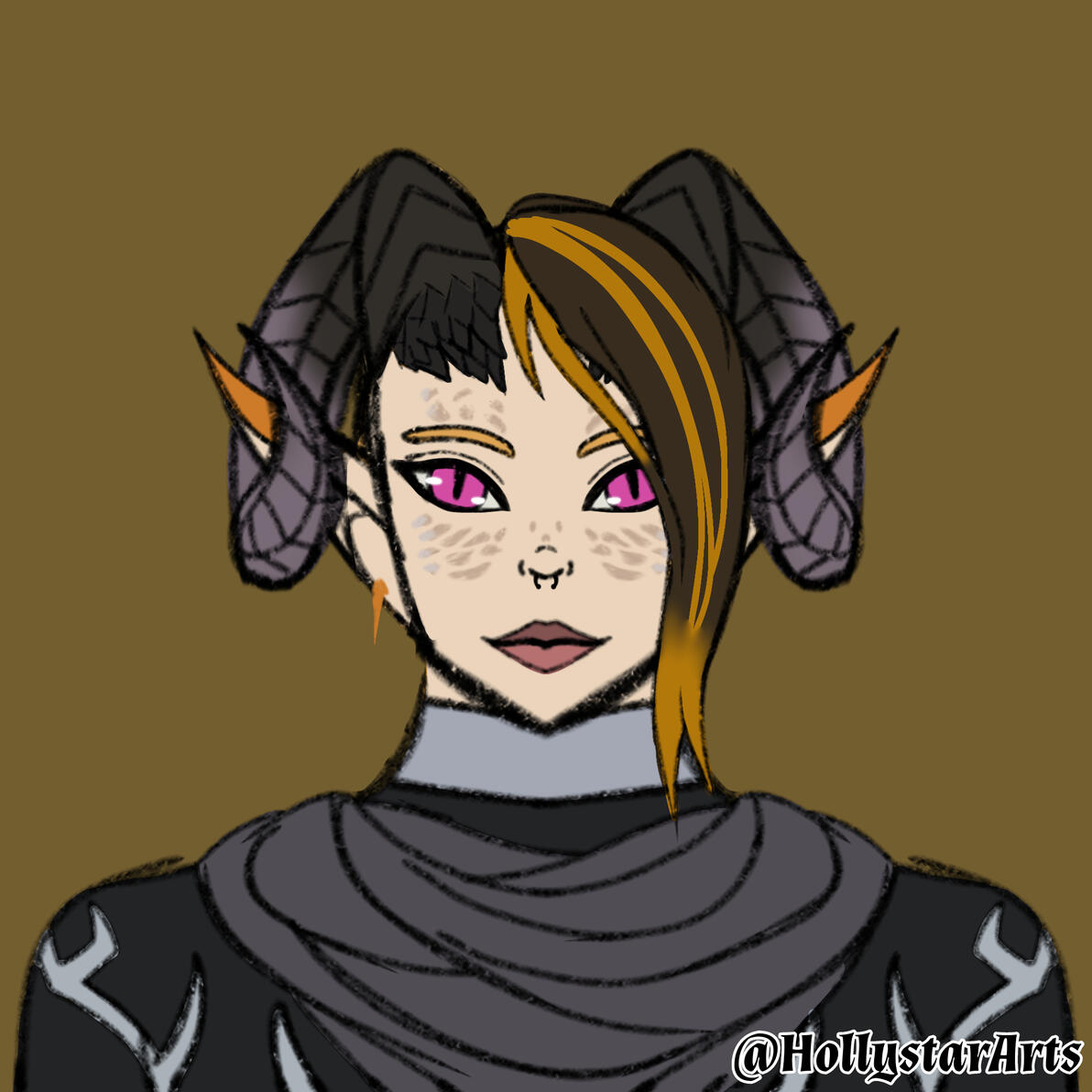 She has some scars across her body in her dracthyr form, but she refuses to apply them on the visage form. She has a few piercings she got while she was in Stormwind, but refuses to indicate them other than her septum and her ears.𖤐 What would your character say their best trait would be?